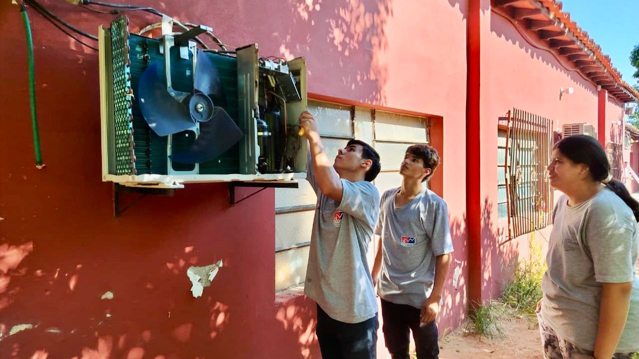 Alumnos del colegio Avay de Villeta se capacitan con el Sistema Nacional de Formación y Capacitación Laboral (SINAFOCAL) en Auxiliar en Refrigeración y como práctica realizan mantenimiento y arreglo de los aires acondicionados de la institución. El curso inició en diciembre del año pasado en la sede de la institución educativa a cargo del instructor Santiago Ozuna.