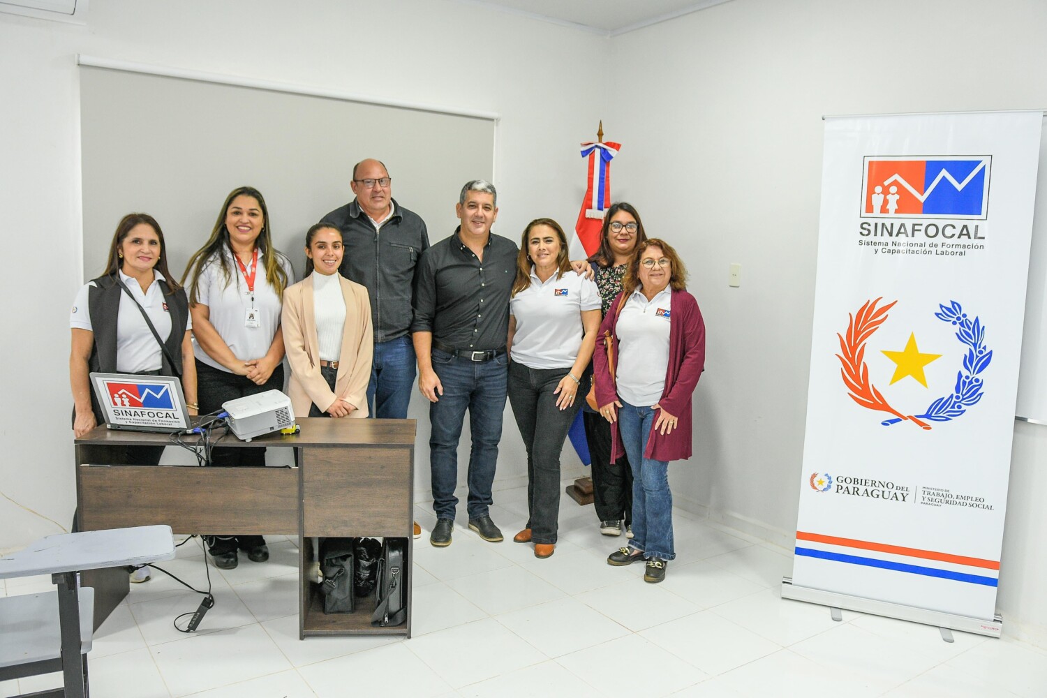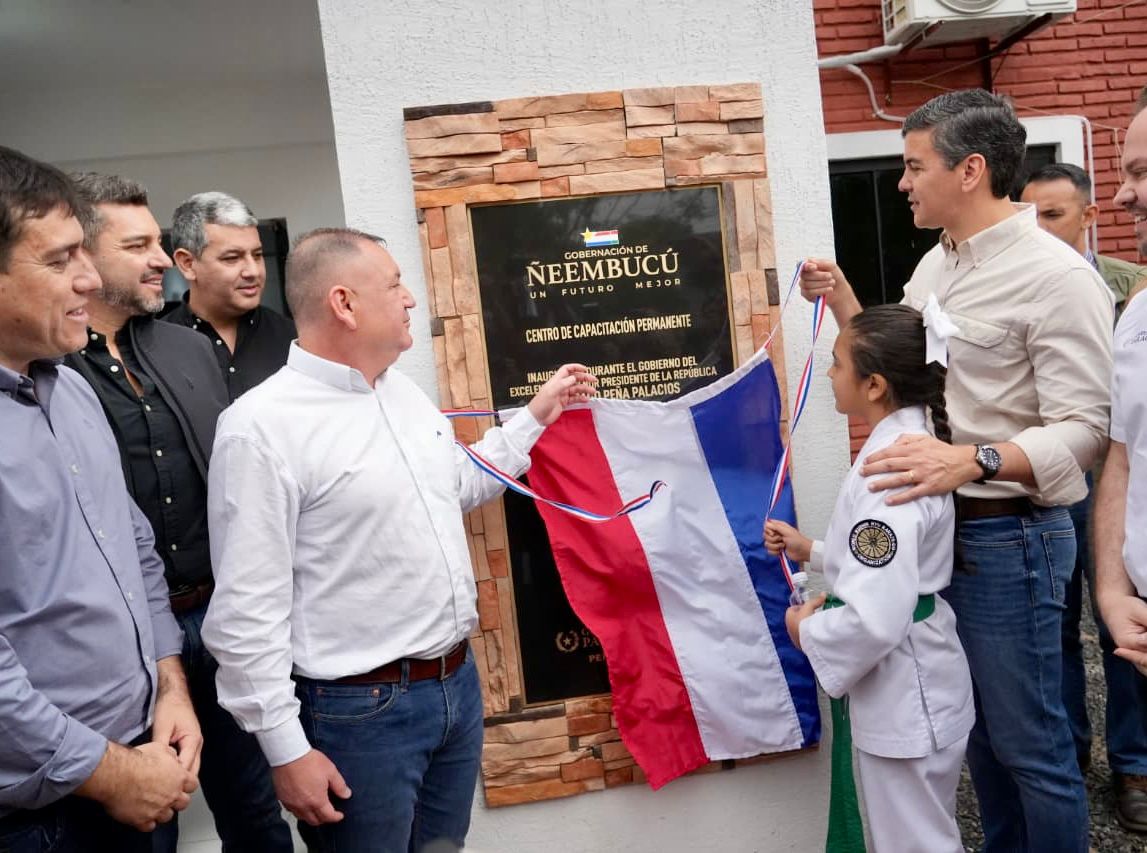 El Presidente de la República, Santiago Peña; y el Vicepresidente, Pedro Alliana habilitaron esta mañana el aula y cursos de capacitación de rápida salida laboral del Sistema Nacional de Formación y Capacitación Laboral (SINAFOCAL). La actividad se realizó en el marco del Día de Gobierno en la ciudad de Alberdi, departamento de Ñeembucú, y contó con la participación del Secretario Técnico del Sinafocal, Alfredo Mongelós.