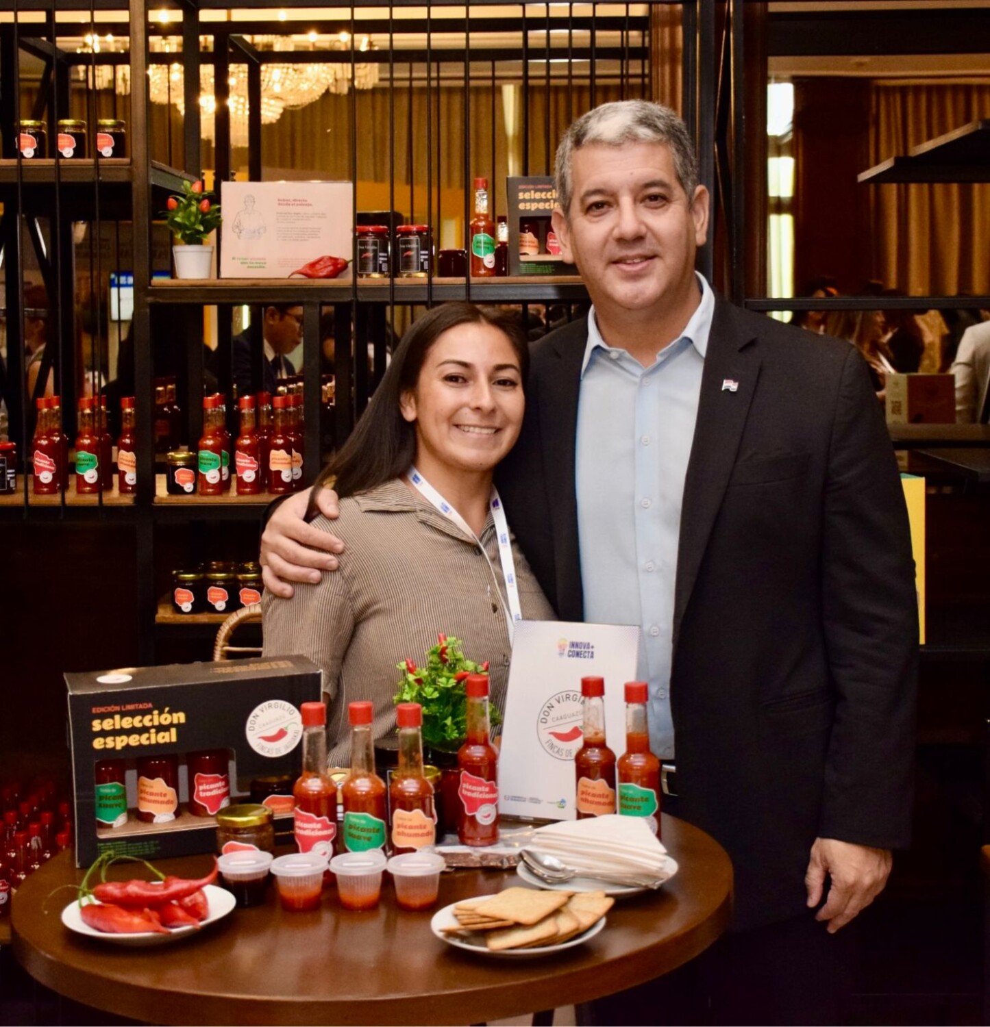 Mongelós visitó y probó los productos de la emprendedora, que son ajis de diferentes sabores, picante, no muy picante, ahumado y con miel. ”La historia de Celeste es un claro ejemplo de cómo la formación profesional te muestra el camino para fortalecer la ruta de crecimiento de un emprendimiento”, manifestó con satisfacción el Secretario Técnico.