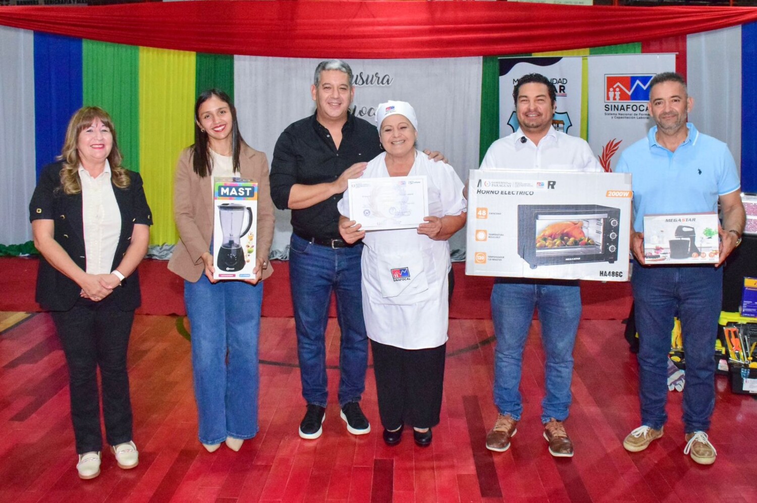 El cierre final de entrega de certificados se realizó en el Estadio Municipal “´Paúl Ruíz Diaz”, donde estuvieron autoridades nacionales y municipales, entre ellas el intendente Fernando Ramírez, el presidente de la Junta Municipal, Gerardo Valoriani y la representante de la Gobernación, Concejal departamental, Eleuteria López. Cabe destacar que las capacitaciones tuvieron el apoyo y el compromiso del Vicepresidente de la República, Pedro Alliana y el Gobernador de Ñeembucú, Victor Fornerón.