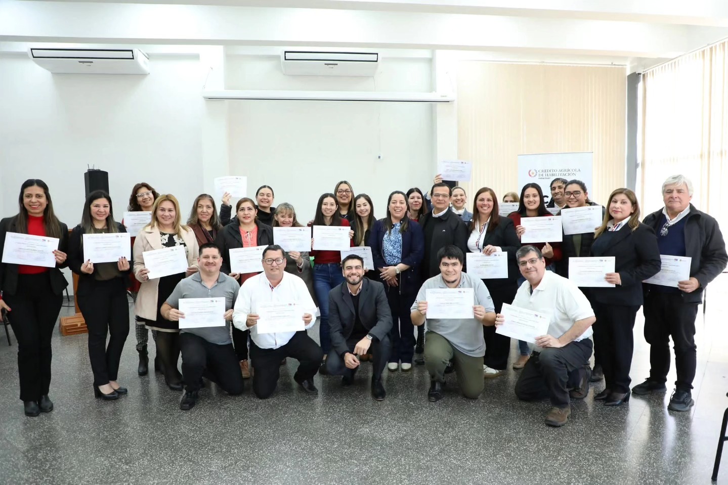 En el marco del fortalecimiento institucional del Crédito Agrícola de Habilitación (CAH), se realizó la entrega de certificados a los funcionarios que participaron del “Taller de Capacitación sobre Liderazgo y Trabajo en Equipo”, desarrollado por el Sistema Nacional de Formación y Capacitación Laboral (SINAFOCAL).