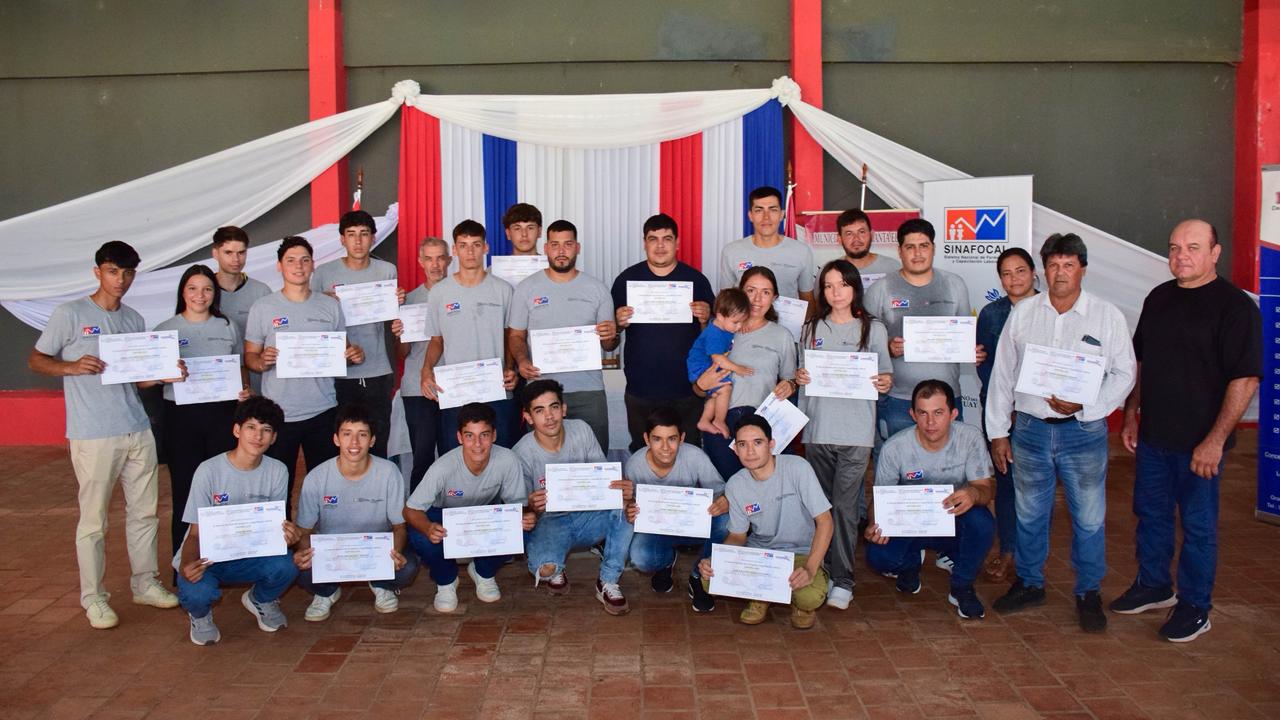 El Secretario Técnico, Alfredo Mongelós, realizó la entrega de certificados y herramientas para el trabajo a los flamantes egresados, quienes se mostraron emocionados y agradecidos con el SINAFOCAL por la capacitación y la entrega de herramientas que les facilitará para el ingreso al mercado laboral.