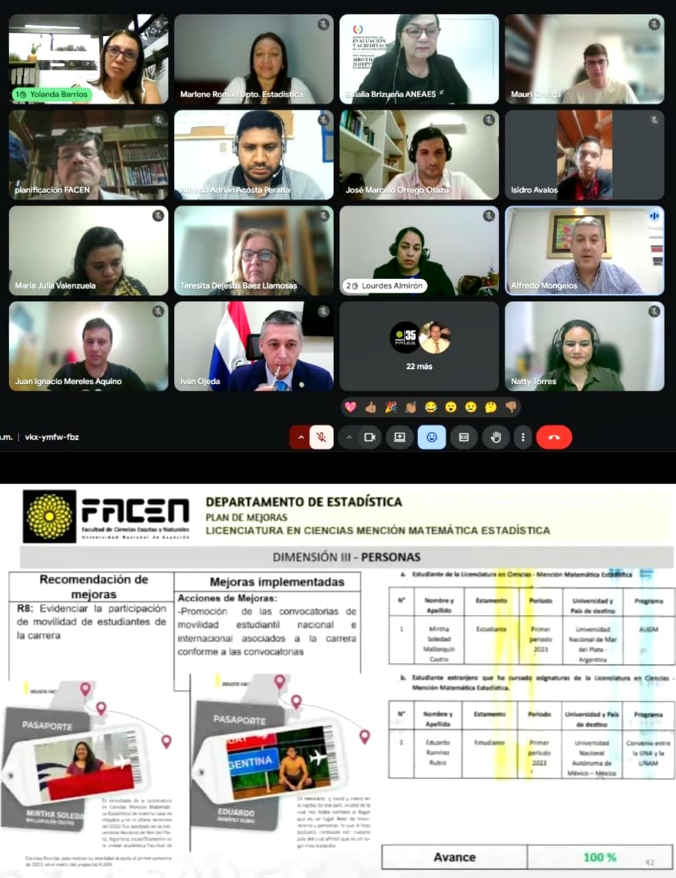 El Secretario Técnico del SINAFOCAL, Econ. Alfredo Mongelós, participó este martes en una reunión virtual organizada por autoridades de la Facultad de Ciencias Exactas y Naturales (FACEN) de la Universidad Nacional de Asunción (UNA), en el marco del seguimiento al Plan de Mejoras de las carreras acreditadas por la Agencia Nacional de Evaluación y Acreditación de la Educación Superior (ANEAES).