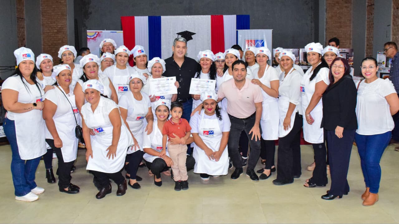 Los beneficiarios se capacitaron en Fontanero y Pastelería y repostería básica. El Secretario Técnico del SINAFOCAL, Alfredo Mongelós y el intendente de la ciudad, Horacio Fernández hicieron entrega de los certificados.