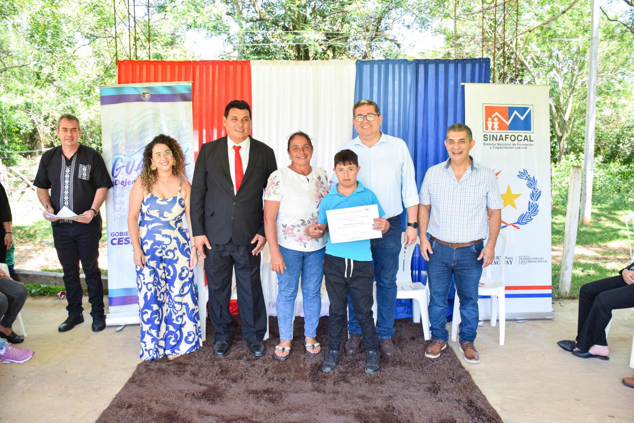El Sistema Nacional de Formación y Capacitación Laboral, entregó esta mañana el certificado de capacitación a 20 kuña guapa, jefas de hogar que se dedican a la cría de animales para consumo y venta y 19 hombres que culminaron con éxito el curso de “Buenas prácticas de manejo y sanitación animal para pequeños productores”.