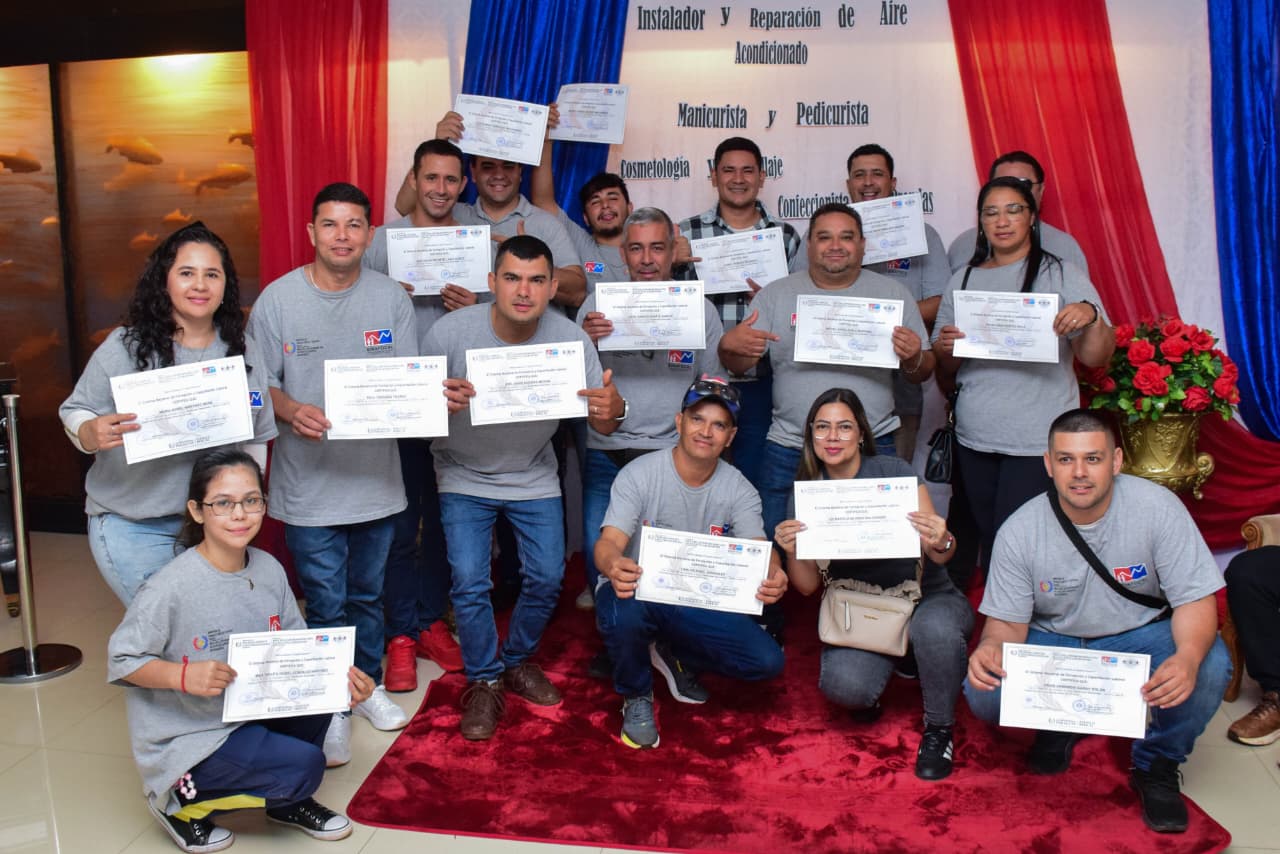 Gran clausura de cursos y entrega de herramientas para el trabajo, cargados de emoción y satisfacción, 434 jóvenes, mujeres y adultos recibieron sus certificados de capacitación del Sistema Nacional de Formación y Capacitación Laboral (SINAFOCAL) en el Centro de Recepciones de Itaipú. Los cursos se realizaron en Ciudad del Este, Hernandarias, San Alberto, Juan León Mallorquín, Santa Rosa del Monday, Naranjal, Itakyry y Minga Guasú, departamento de Alto Paraná.