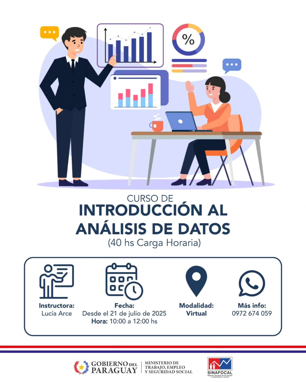 El Sistema Nacional de Formación y Capacitación Laboral (SINAFOCAL) habilita las inscripciones para el curso gratuito de Introducción al Análisis de Datos con Excel y Power Query, dirigido a personas interesadas en adquirir competencias en el manejo, transformación y análisis de datos.