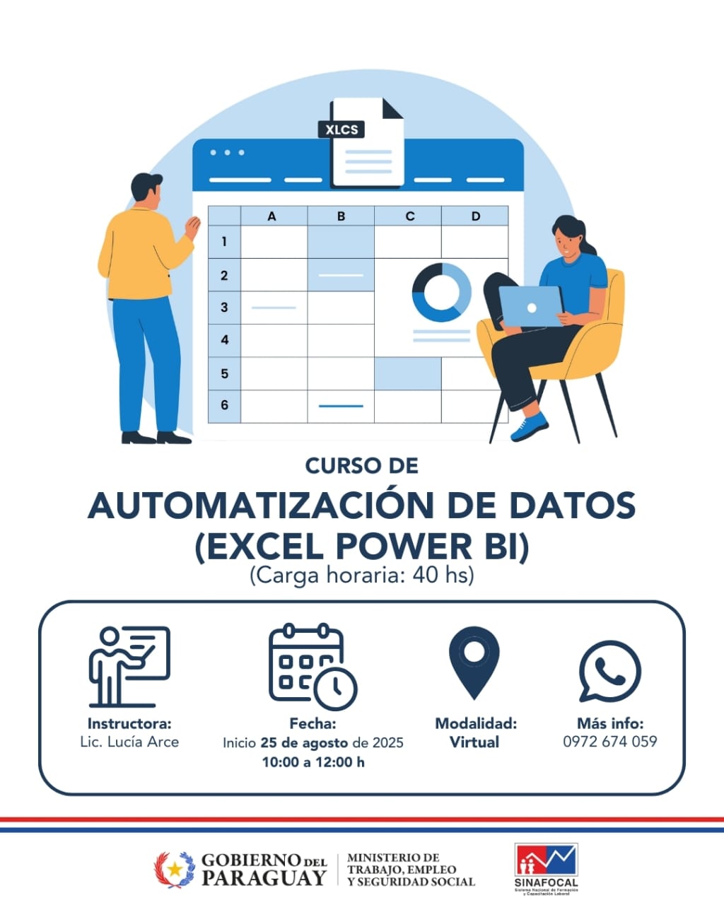 El Sistema Nacional de Formación y Capacitación Laboral (SINAFOCAL), dependiente del Ministerio de Trabajo, Empleo y Seguridad Social, anuncia la apertura del curso de Automatización de Datos (Excel Power BI), una capacitación gratuita con una carga horaria de 40 horas, diseñada para potenciar las habilidades digitales de jóvenes, profesionales y trabajadores que buscan mejorar su perfil de empleabilidad en un mercado laboral cada vez más competitivo.