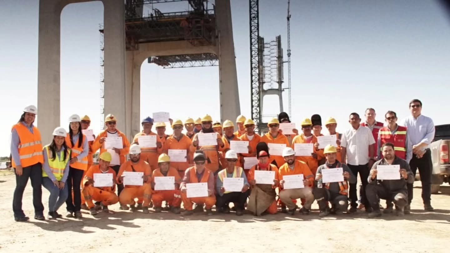 En un emotivo acto desarrollado en el majestuoso escenario del futuro Puente Bioceánico, que unirá Carmelo Peralta con Puerto Murtinho, fueron entregados certificados de competencia laboral a 46 trabajadores vinculados al sector de la construcción.